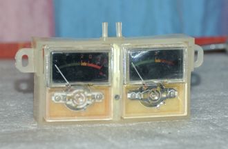 Индикаторы стрелочные М4387-300 в корпусе 1000 руб. цена за пару вместе с рамкой размеры индикатора 42х36 мм окно 36х21 мм Работают на просвет, гамма зелено-желто-красная