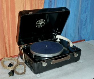 Диск проигрывателя имеет две скорости вращения - 33 и 78 об/мин.
