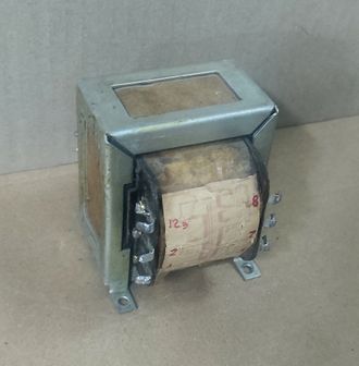 Ламповый трансформатор под ремонт 450 руб. В корзину Трансформатор Ш-образный с бумажными окнами V1 = 220v R1 = 80 Ом V2(3-4) - 20v V3(7-8) - 6.4v V4(9-10-11) - 4.2+2.4v V5(5-6) - в обрыве, высоковольтная Размеры - 60х70х75 мм Крепеж - 50х47 мм Масса - 0,9 кг
